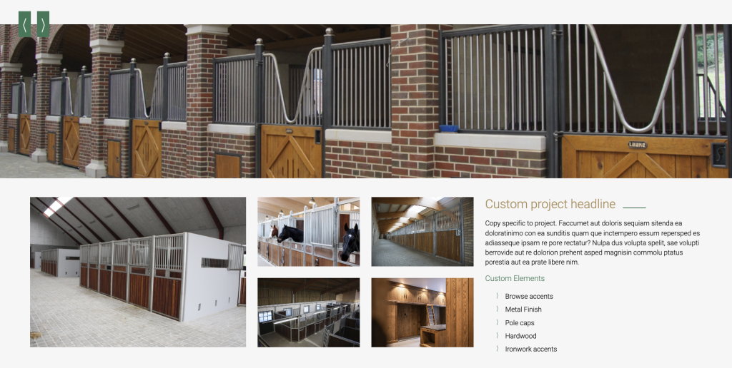 This one is setup using the class “tile-grid” on the parent Grid block element. Then has some CSS to closely match the design. Neat trick is I’m using the “mark” element to draw the actual button, so that I can make the Button and Anchor elements fill the whole tile. In this way the buttons are managed like any other buttons on the backend, but the link will fill up the whole tile on the front-end. Additionally, by adding our own class we can have more finite control of when the grid will reduce columns to 2 and then 1.