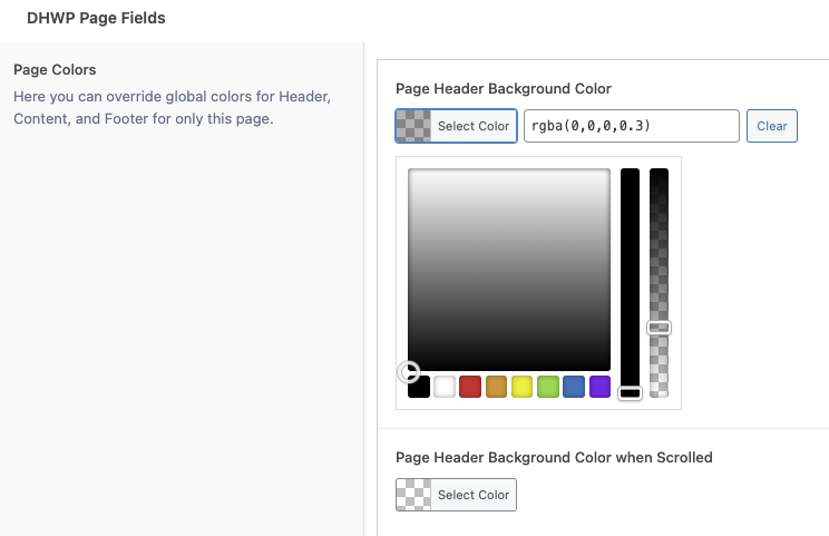 So, for example on the Contact page, I set the Page Header Background Color to .3 black…