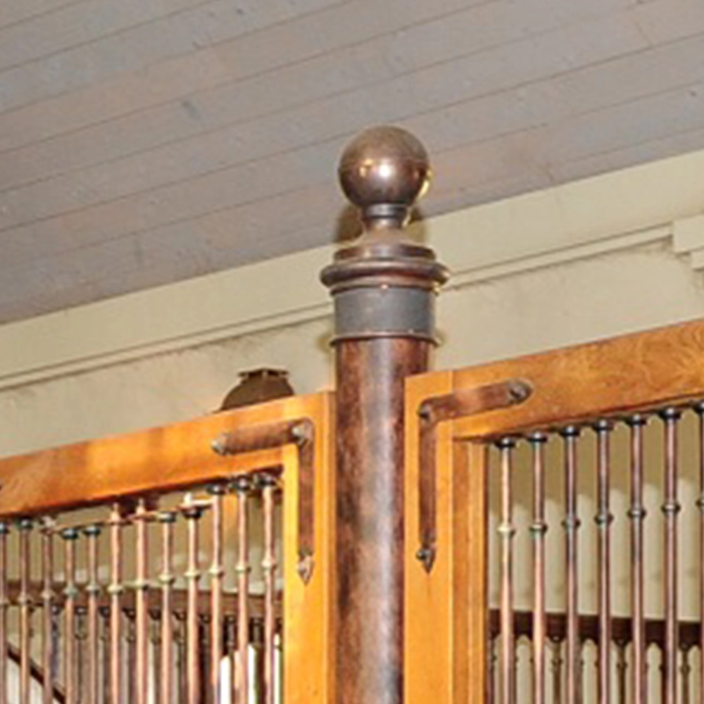- 18mm solid iron bars, 50mm gaps, 100 cm high, connected to the frame with the “Laake-compression-press-technique” (without welds)