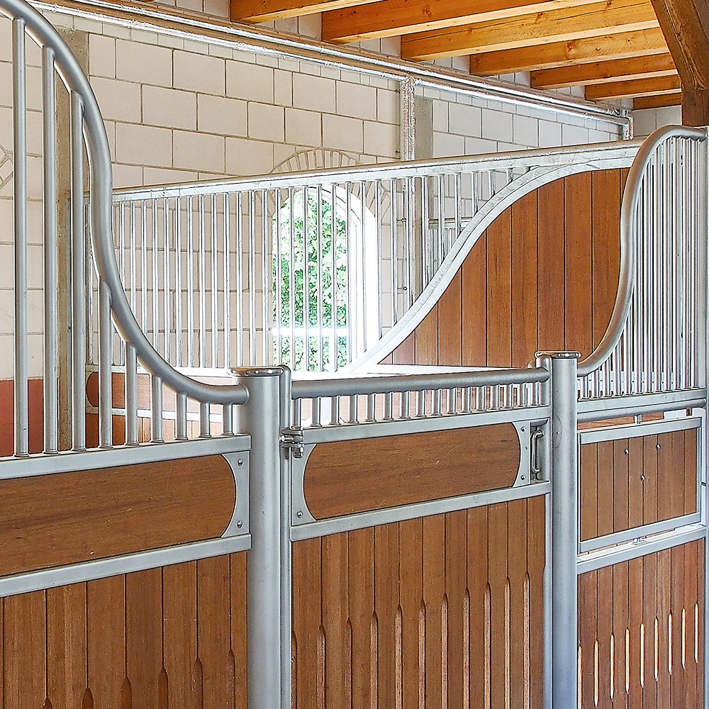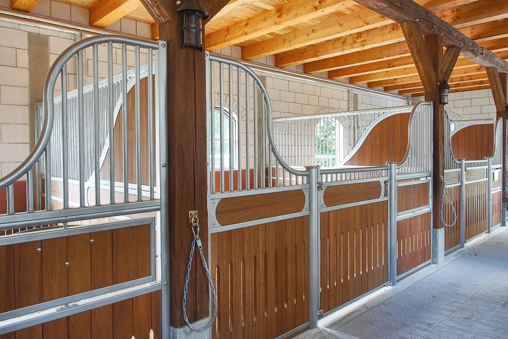 The Gut Roest model embodies elegance in motion. Its distinctive curved front and three-piece hinged door system bring both refinement and practicality to your stable, creating a design that feels as effortless as it is secure. We shape every detail to your personal touch to enhance daily life for both horse and owner.