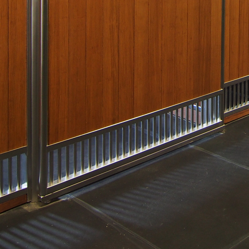 - Horizontal ventilation grill at the bottom of the stall front